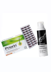 اسپری کربوکسی تراپی مو کامازو کره ای 300 میل و پریورین 120 عددی مکمل ضد ریزش مو