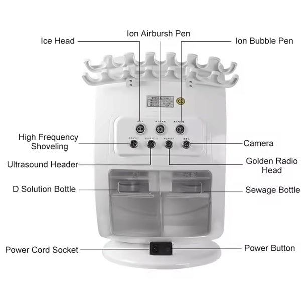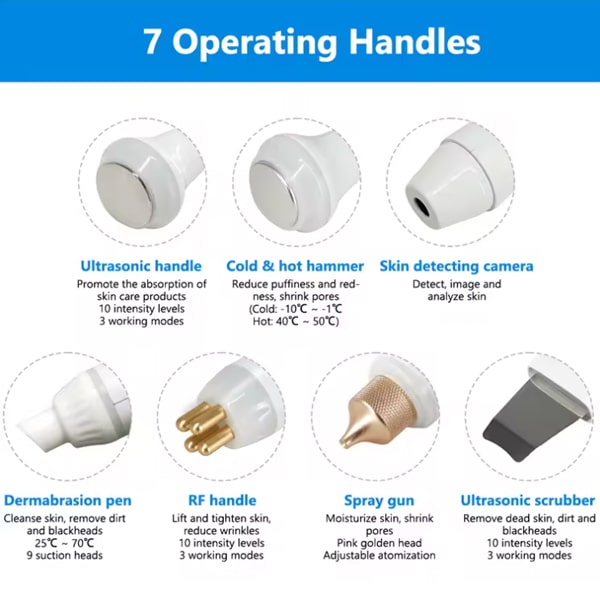 این دستگاه می تواند پوست را مرطوب و چسبانده و چین و چروک را صاف کند. پوست، لک، لک، چین و چروک و رنگدانه های ناخواسته پوست را از بین می برد. سر ماساژ سرد به کوچک شدن منافذ و روشن شدن رنگ پوست کمک می کند.