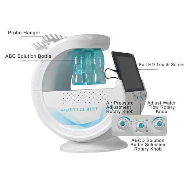دستگاه هیدروفیشیال اسمارت آیس بلو، با تکنولوژی اولتراسونیک و جت اکسیژن، یک دستگاه 7 کاره برای مراقبت از پوست است. این دستگاه اغلب برای جوانسازی پوست، روشن کردن پوست، و بهبود کلی ظاهر پوست مورد استفاده قرار میگیرد. این دستگاه ها شامل تکنولوژی های مختلفی هستند که به صورت ترکیبی برای بهبود کیفیت و سلامت پوست عمل میکنند. در ادامه به توضیح عملکردهای مختلف این دستگاه میپردازیم :