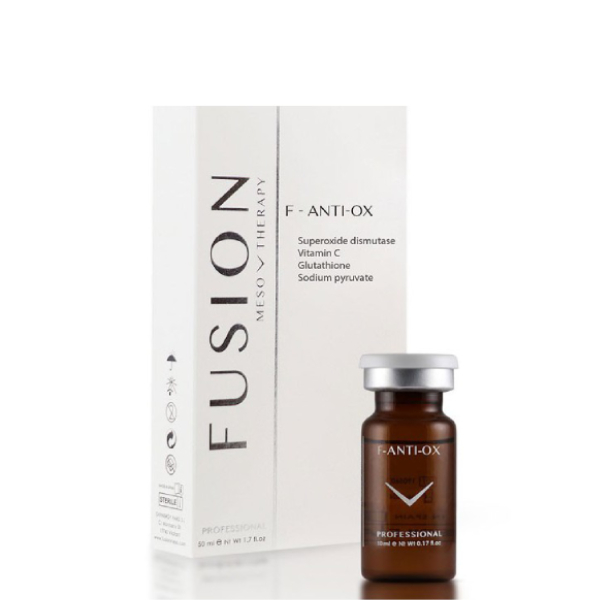 کوکتل ضد لک فیوژن ANTI OX ، مزوی قدرتمند برای جلوگیری از تاثیر رادیکال های آزاد، اکسیداسیون و هایپرپیگمنتاسیون پوست می باشد.