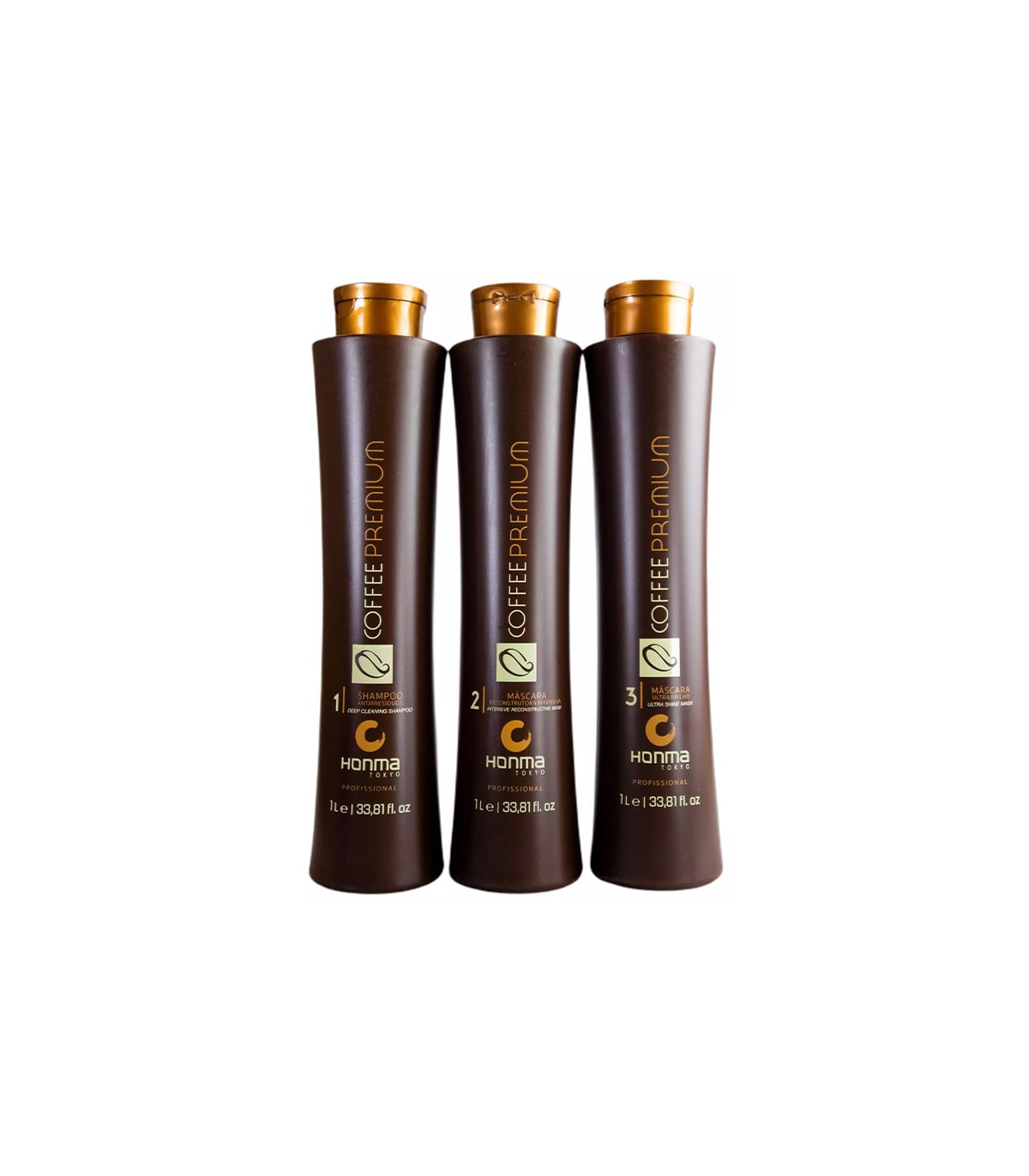 پک درمان کراتینه و مراقبت خانگی کراتین کافی پرمیوم هونما Honma یک پک صاف کننده سه مرحلهای است که برای موهای خشک، آسیبدیده یا مستعد وز بسیار مناسب است.